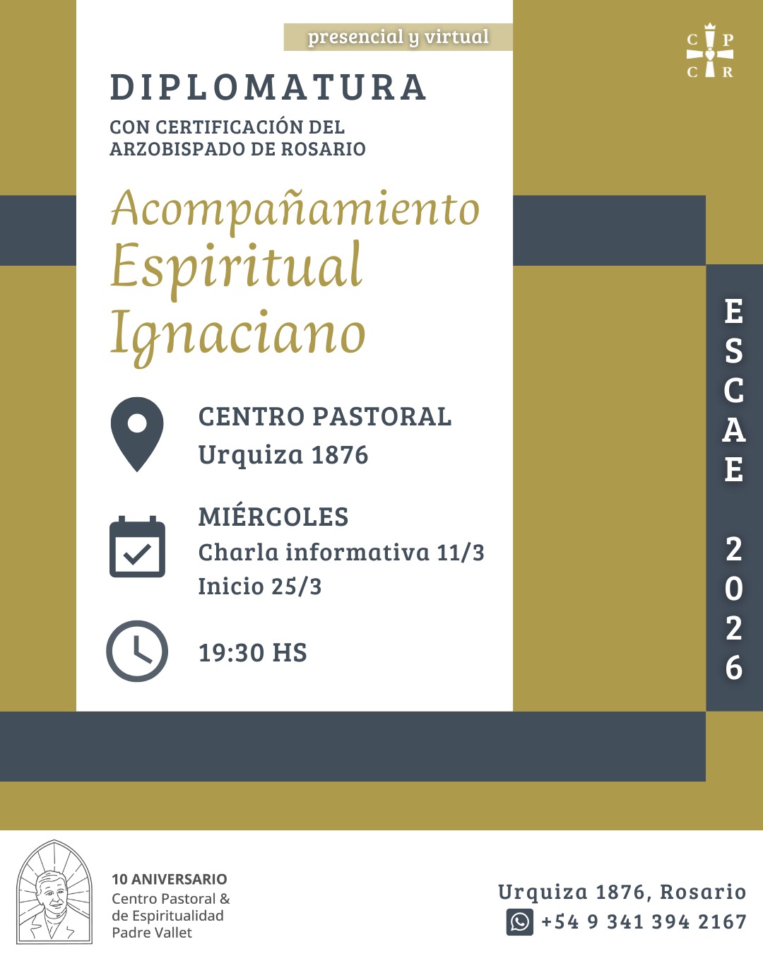 El inicio de primer año es el día miercoles 25 de marzo de 2026, de 19.30 hs a 21 hs y con una propuesta de arancel mensual (con matricula previa) y con ofertas de becas completas y medias becas para agentes pastorales que apliquen en los requisitos.